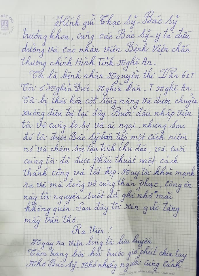 Những lá thư cảm ơn mộc mạc, những lời tri ân sâu sắc của người bệnh và gia đình luôn là nguồn động lực mạnh mẽ giúp đội ngũ y bác sĩ, cán bộ nhân viên Bệnh viện Chấn thương chỉnh hình Nghệ An nỗ lực, quyết tâm hơn nữa trong sự nghiệp chăm sóc, bảo vệ và nâng cao sức khỏe nhân dân.