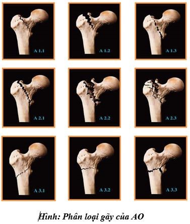 Các tác giả AO chia liên mấu chuyển xương đùi thành 3 nhóm chính A1 – A2 –  A3; trong mỗi nhóm chính lại có 3 tiểu nhóm: A1.1; A1.2; A1.3;…