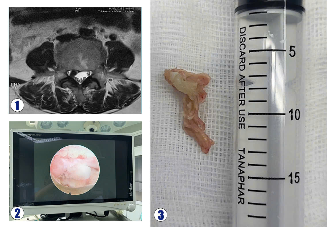 Bệnh nhân Nguyễn Thị S., 53 tuổi, ở xã Nghĩa Đàn – Nghệ An nhập viện trong tình trạng đau dữ dội chân phải, đi lại khó khăn. Bệnh nhân đã được điều trị nội khoa 2 tuần nhưng không đỡ đau. Kết quả chụp MRI cột sống thắt lưng phát hiện khối thoát vị đĩa đệm L4L5 chèn ép rễ L5 bên phải. Bệnh nhân được phẫu thuật nội soi lấy khối thoát vị đĩa đệm. Ca phẫu thuật kéo dài gần một tiếng, khối thoát vị đã được lấy qua nội soi, rễ L5 phải được giải phóng chèn ép. Sau phẫu thuật, bệnh nhân hết đau hoàn toàn chân phải, vận động tốt và trở lại sinh hoạt thường ngày chỉ sau một ngày.