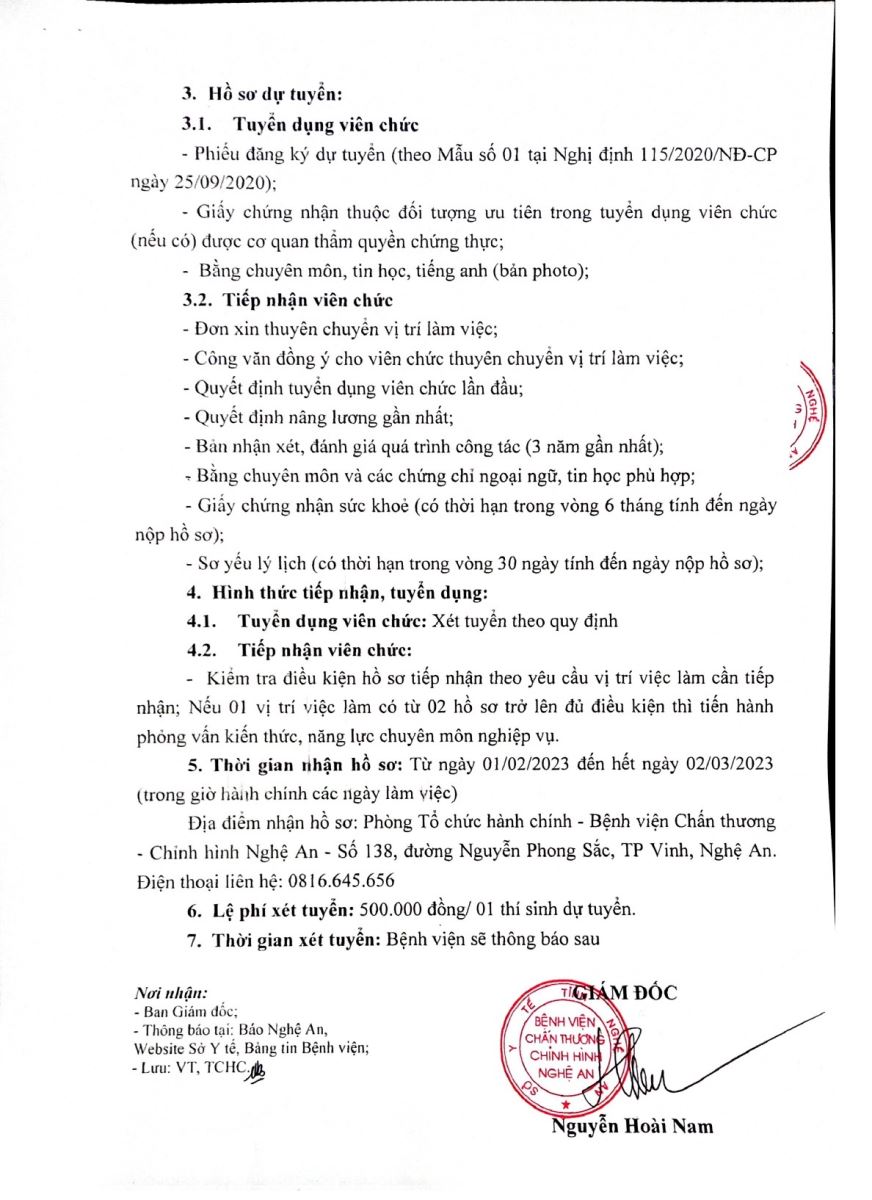 Bệnh viện Chấn thương Chỉnh hình Nghệ An xin thông báo tuyển dụng viên chức năm 2023 như sau: